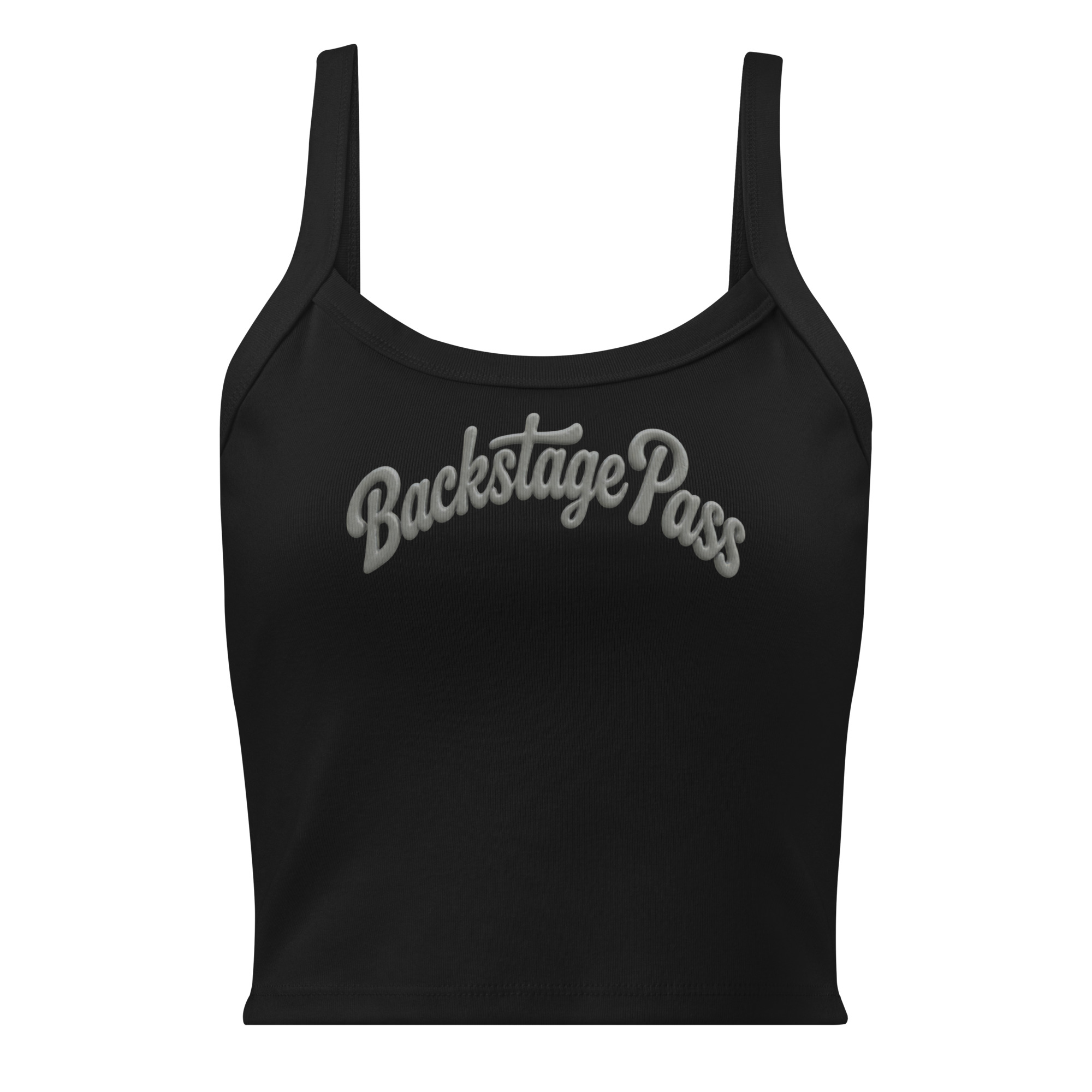 This isn’t your standard, boxy merch-table hand-me-down. Designed for the woman who has earned her spot on the rail, the Backstage Pass Tank features a tonal, charcoal-gray print on a midnight-black micro-ribbed body. It’s a high-status tease designed for those with the clearance to look closer.